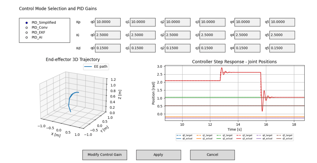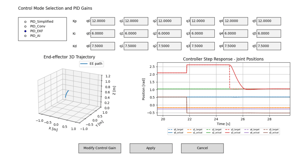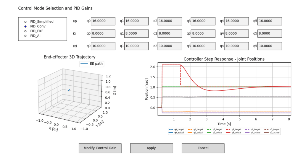 In this section, we present the model and control performance of three different control models: simplified PID, conventional PID, and time-delayed Extended Kalman Filter-based trajectory tracking control.